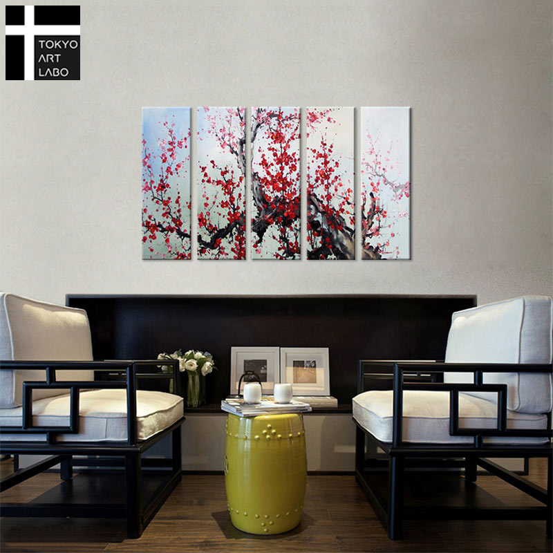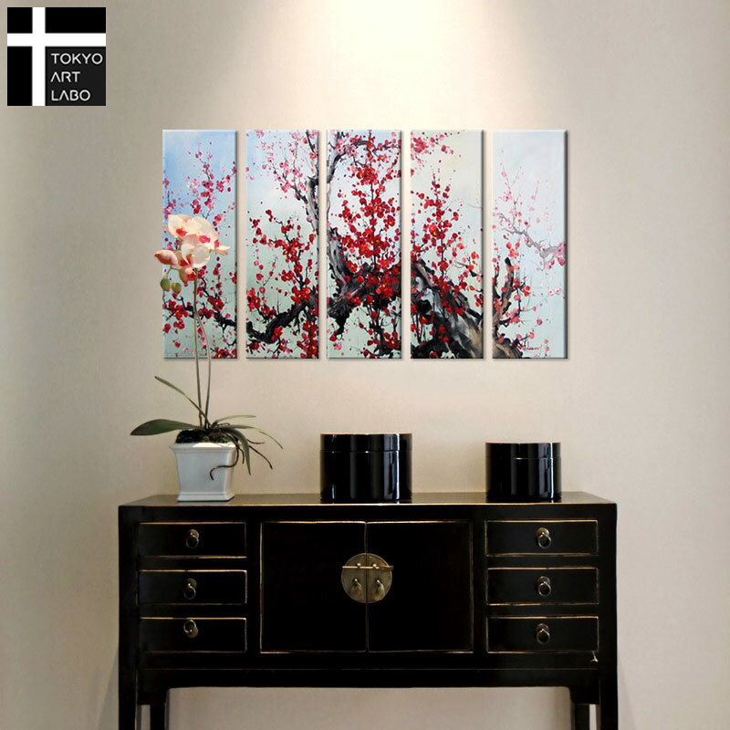 超爆安 壁面装飾用 和モダン 絵画 和風 花 油絵 リビングや和室 玄関の壁に飾る絵 インテリア 油絵 絵画 壁掛け アートパネル 和を基調に 個性的でお洒落 直筆の繊細さと高級感 和風 玄関の壁に飾る絵 和食店 旅館の壁 アートパネル 紅梅の和モダンアート W125cm 5